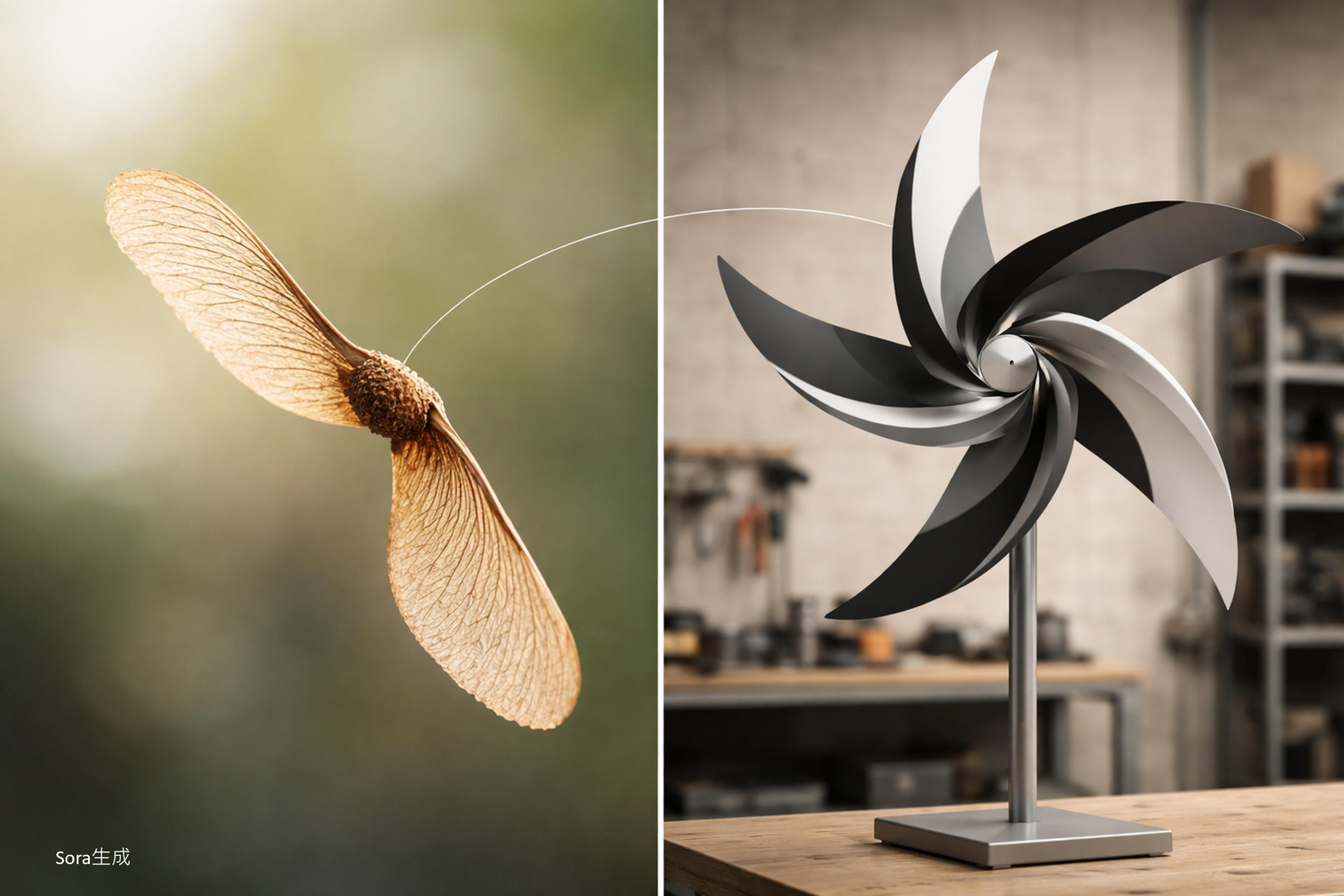 自然界中,許多植物早已解決「如何在低風速中有效利用氣流」的問題。其中,熱帶樹種 Triplaris americana 的翅果(samara)具有三片薄而彎曲的葉狀結構,當種子從高處落下時,會產生穩定的自旋(autorotation),藉由空氣阻力與升力的平衡,使其在極低氣流條件下仍能長時間滑翔與旋轉,進而擴散至更遠距離。這種結構本質上是一種高度優化的「低雷諾數氣動系統」,能在微弱氣流中維持穩定運動。