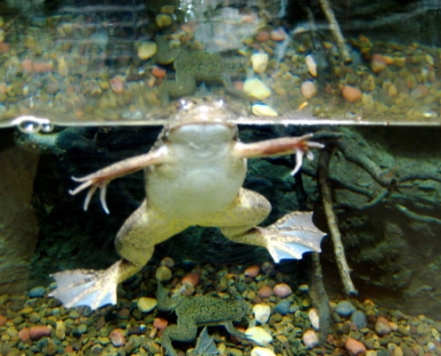 藉由細胞周圍黑色素顆粒的移動,蛙類皮膚中的色素會對荷爾蒙產生反應而變色