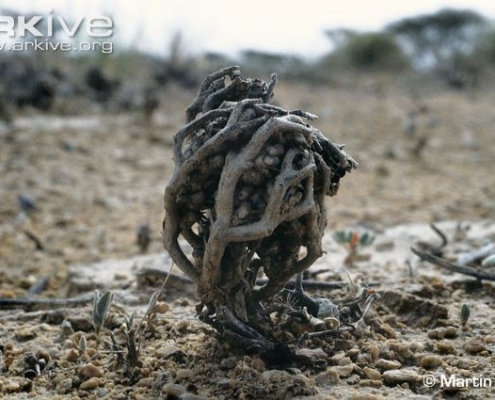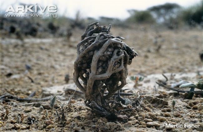 含生草/耶利哥薔薇的乾枯枝條透過濕裂運動改變細胞的膨脹及萎縮來散播種子 (Dead branches of the Jericho rose disperse seeds by alternating swelling and shrinkage of cells by a hygrochastic movement.)