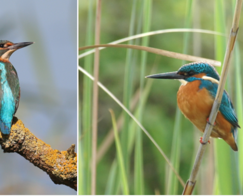 翠鳥藉色素顆粒、海綿狀奈米結構及薄膜而產生色彩鮮艷的羽毛 (Feathers of the common kingfisher create colorful feathers due to pigment granules, spongy nanostructures, and thin films.)