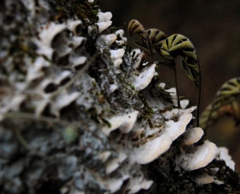 復甦蕨的葉片透過有層次的柵狀及海綿狀葉肉層在缺水過後能恢復形狀 (Leaves of the resurrection fern regain shape after dehydration due to hierarchical structure of palisade and spongy layers.)