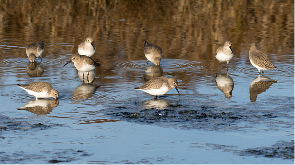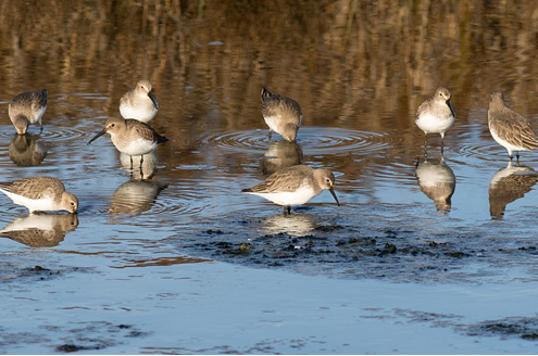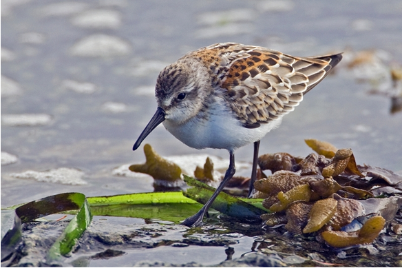 鷸的喙用水的表面張力,將食物吸入嘴裡 (The bill of the sandpiper draws food into its mouth using water’s surface tension.)